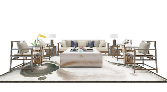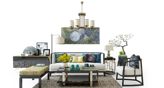 L06-17现代中式沙发组合电视柜花瓶陶罐