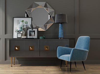 H40-1115现代端景柜装饰镜子休闲椅落地灯
