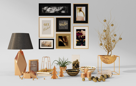 Z12-1101现代挂画台灯烛台平盆栽摆件组合