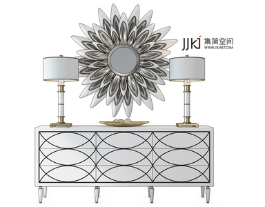 H43-1116欧式白餐边柜台玄关柜台灯镜子组合