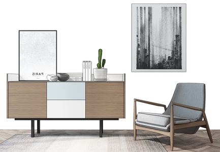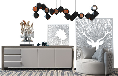 H47-1115现代装饰柜休闲沙发装饰画吊灯组合