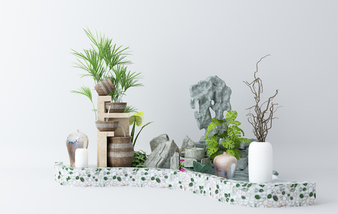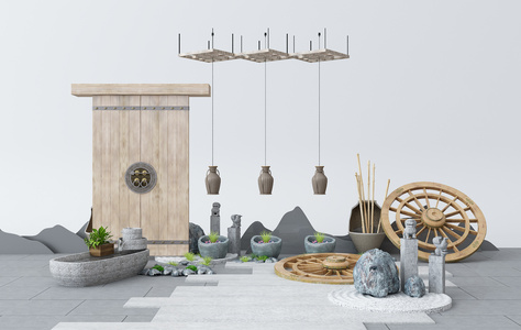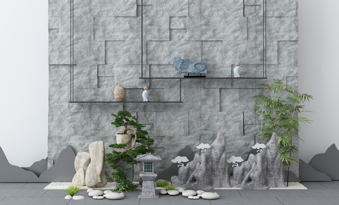 H03园林石头墙景观毛石墙假山山脉石头片石盆景祥云