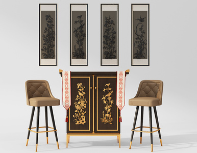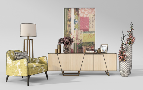 Z05-1105新中式装饰柜落地灯装饰品组合