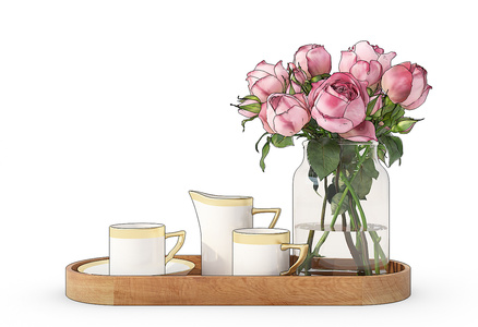 Z30-1020现代花瓶书籍摆件组合玫瑰花