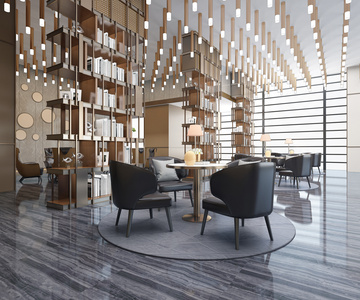 H06-0408现代新中式售楼处会客区洽谈区书柜洽谈椅