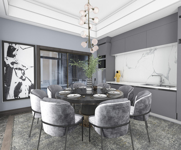H07-0408现代轻奢新中式餐厅餐桌椅吊灯
