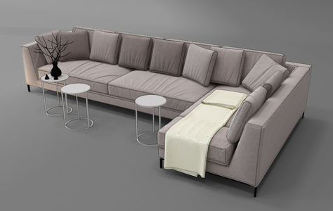 Z06-0309现代灰色布艺转角多人沙发茶几组合
