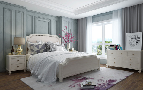 H10-0306简欧式卧室床床头柜组合