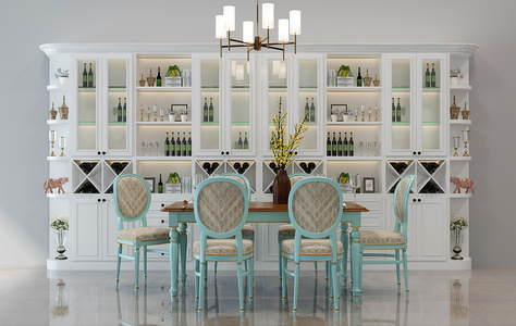 H12-0306美式欧式地中海田园餐桌椅酒柜