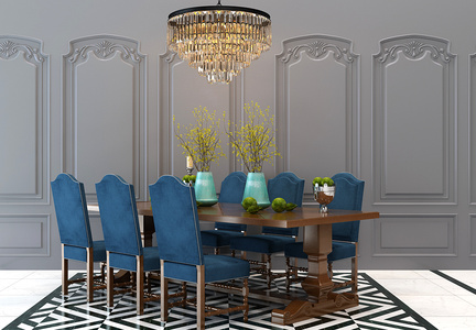 H15-0305美式欧式餐桌椅吊顶组合