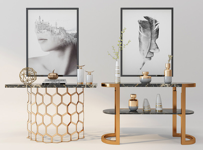 Z23-0301简欧式现代轻奢金属玄关边柜装饰架摆件组合副本