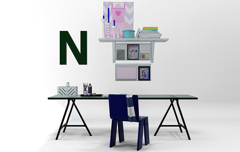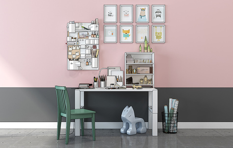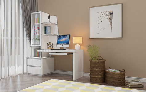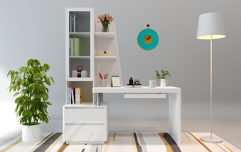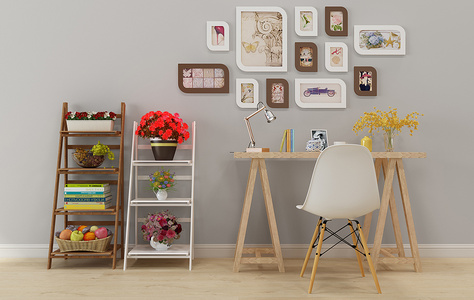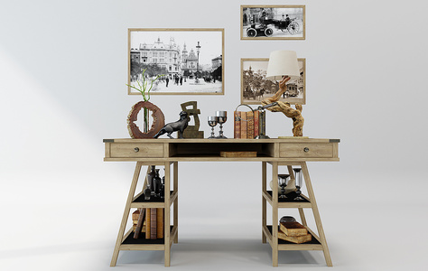H43-0101北欧实木书桌椅台灯装饰架书籍盆栽水果