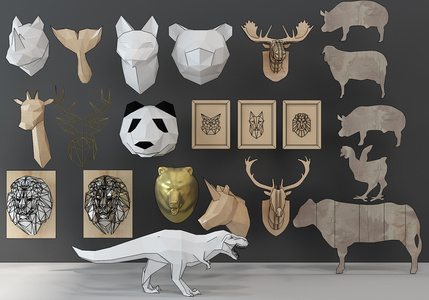 H30-1123几何动物恐龙鹿挂件组合