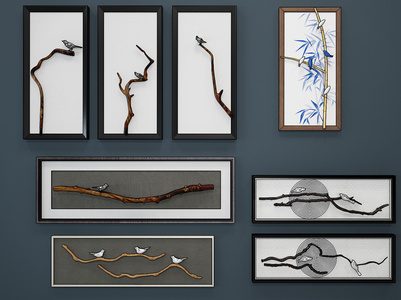 Z19-1119新中式小鸟枯枝立体装饰画组合