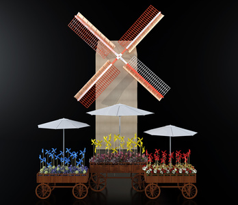 现代荷兰风车,贩卖小车,风车 售卖车美陈