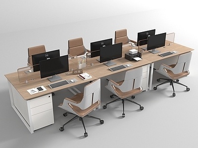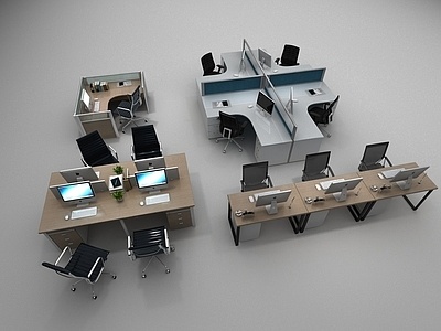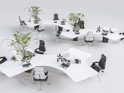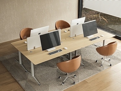 现代办公桌椅组合,会议桌组合,员工工位SU模型