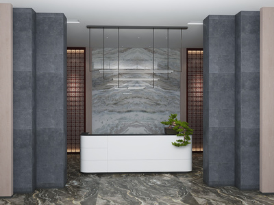新中式酒店会所接待大厅大堂