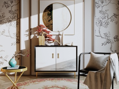 新中式装饰柜子椅子摆件组合
