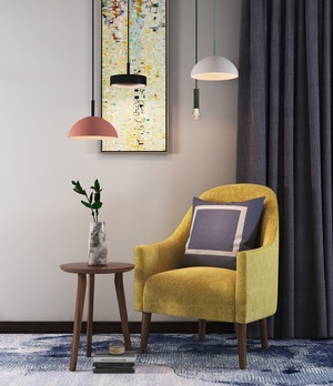 14现代休闲椅,单人沙发边几小吊灯