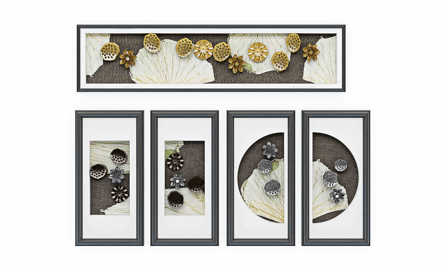 新中式荷花莲藕墙饰挂画立体画装饰画