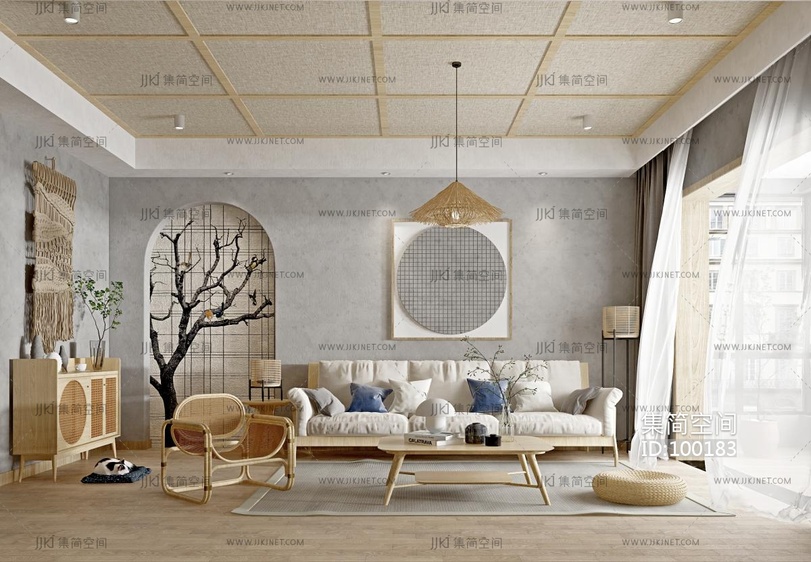 北欧日式自然风民宿客厅 3d模型下载 [模型ID:100183]