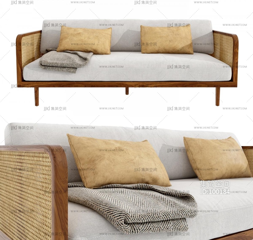 北欧日式自然风布艺双人沙发 3d模型下载 [模型ID:100184]