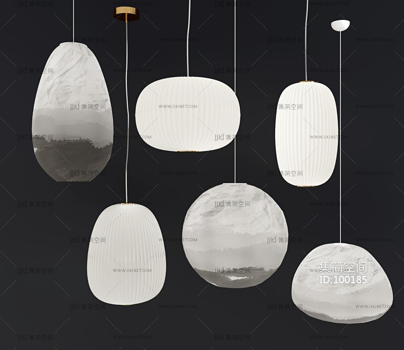 新中式日式吊灯灯笼组合 3d模型下载 [模型ID:100185]