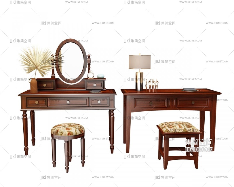 美式欧式古典梳妆台, 3d模型下载 [模型ID:100207]