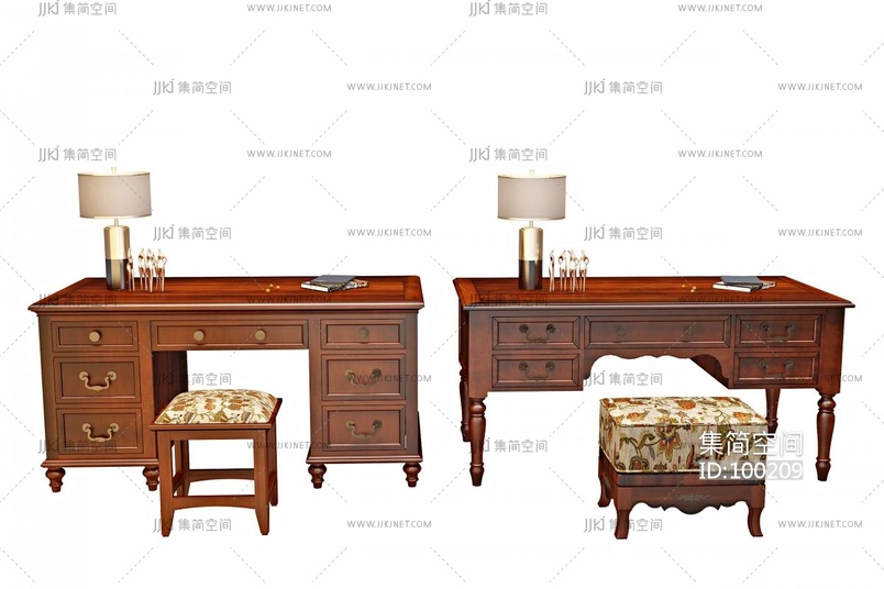 美式古典红木梳妆台 3d模型下载 [模型ID:100209]