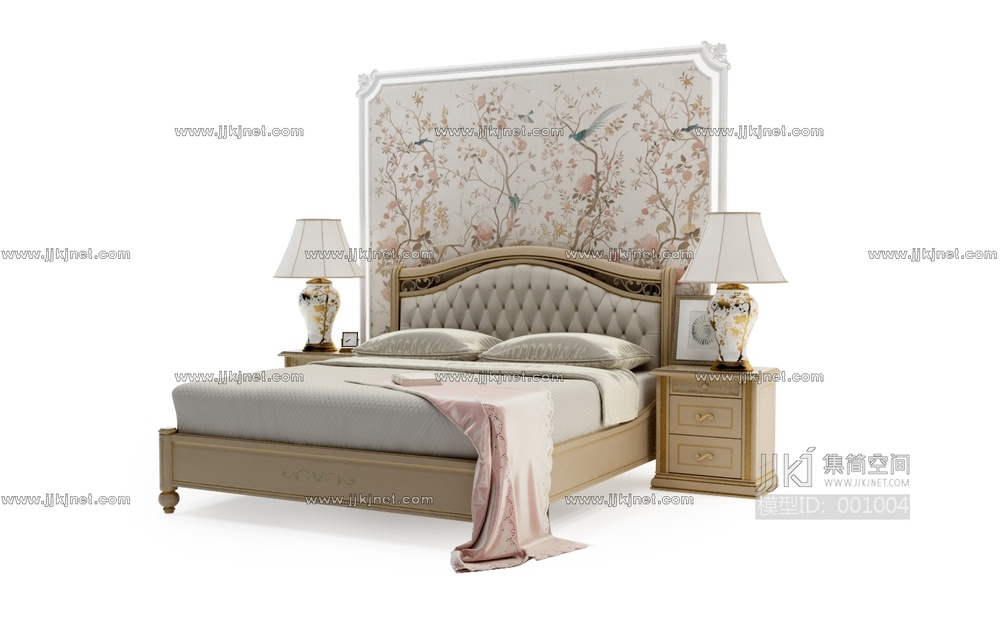 欧式双人床3d模型下载