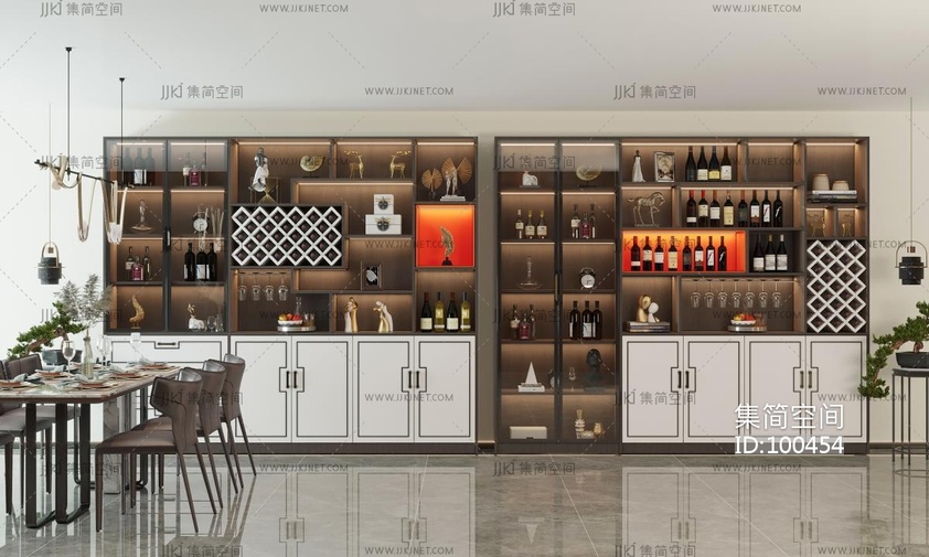 新中式酒柜,置物柜,玄关柜,展示柜 3d模型下载 [模型ID:100454]