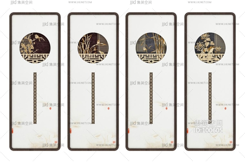 新中式四君子挂屏 3d模型下载 [模型ID:100605]