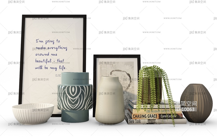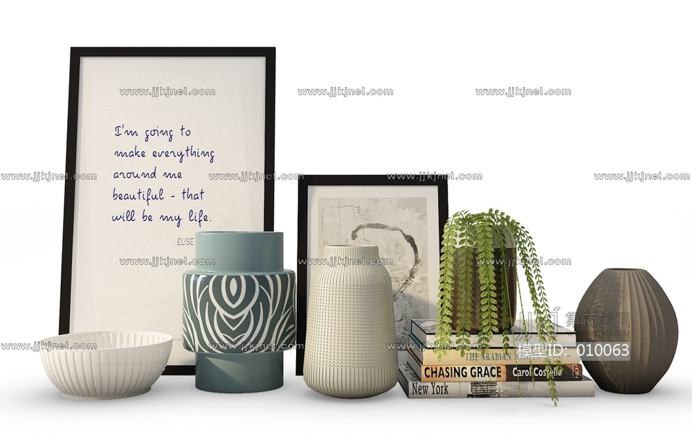 现代新中式雕塑摆件_饰品摆件组合3D模型3d模型下载