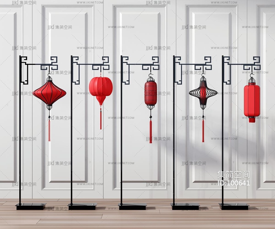 新中式金属落地灯,灯笼 3d模型下载 [模型ID:100641]