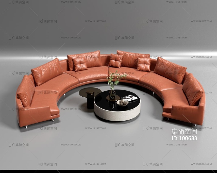 现代皮革弧形半圆形异形沙发 3d模型下载 [模型ID:100683]