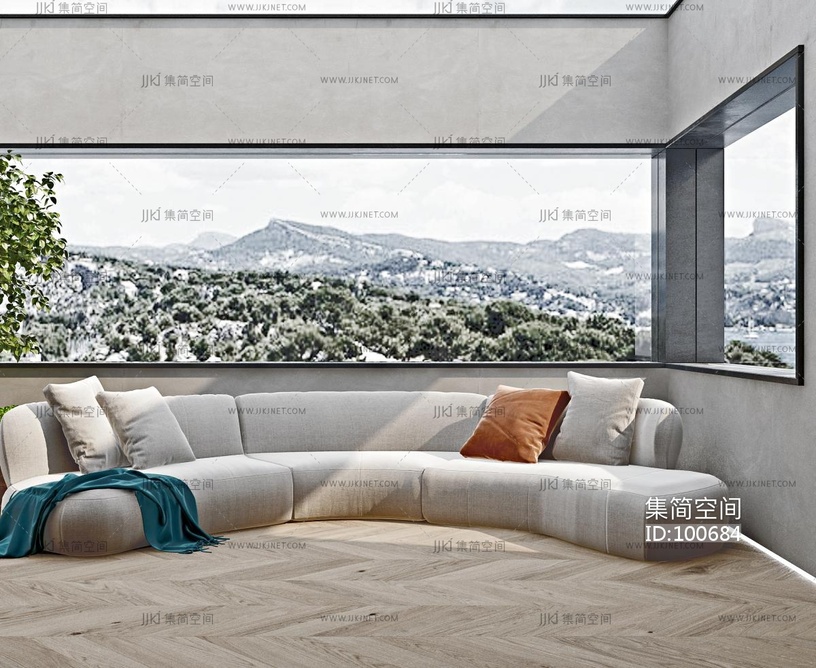 现代布艺弧形沙发 3d模型下载 [模型ID:100684]