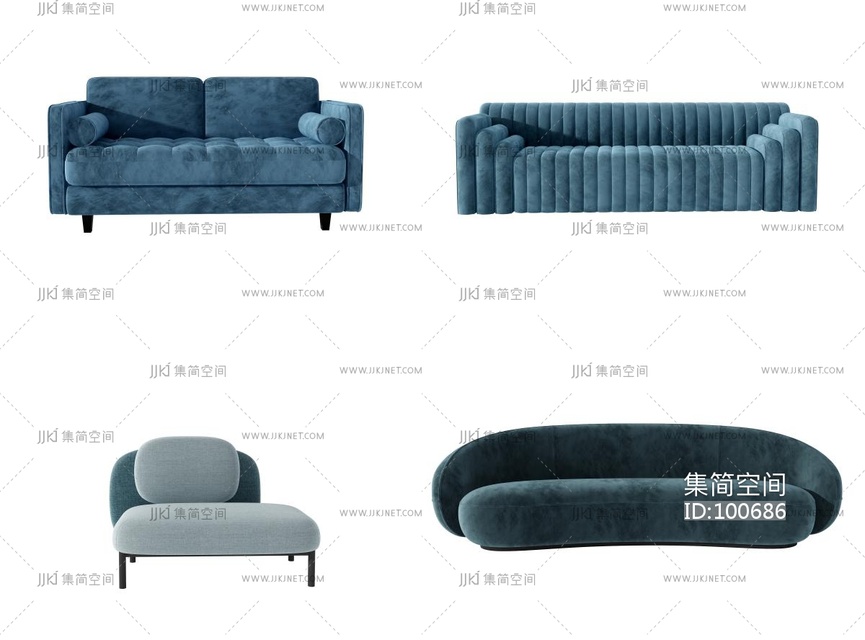 现代布艺异形沙发 3d模型下载 [模型ID:100686]