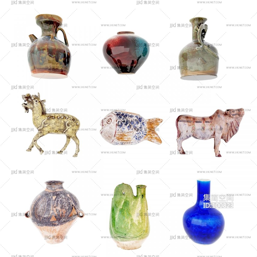 新中式陶瓷器皿中式古董摆件瓷组合3d模型3d模型下载