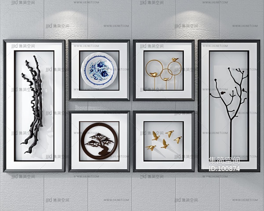 新中式立体装饰挂画 3d模型下载 [模型ID:100874]
