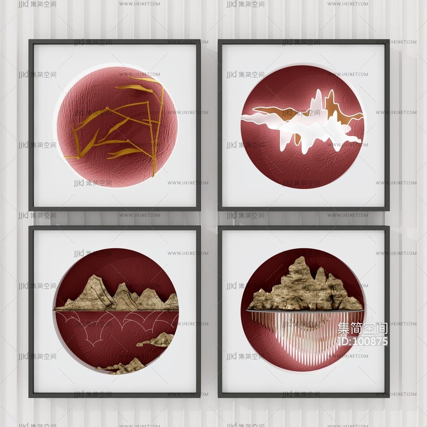 新中式山峰装饰挂画 3d模型下载 [模型ID:100875]