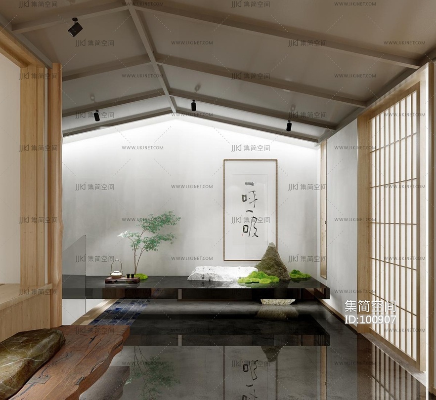 新中式茶楼玄关过道 3d模型下载 [模型ID:100907]
