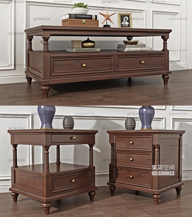 美式古典实木茶几边几床头柜, 3d模型下载 [模型ID:100912]
