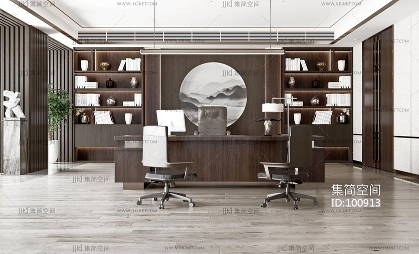 新中式总经理办公室 3d模型下载 [模型ID:100913]