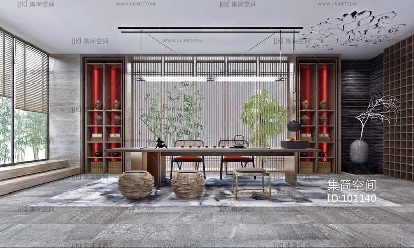 现代书房 书桌椅 壁柜 挂画 吊灯 书 盆栽 摆件3d模型下载