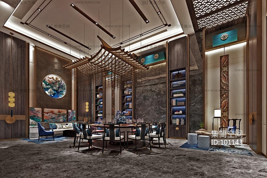 新中式轻奢酒店餐厅包房 3d模型下载 [模型ID:101143]