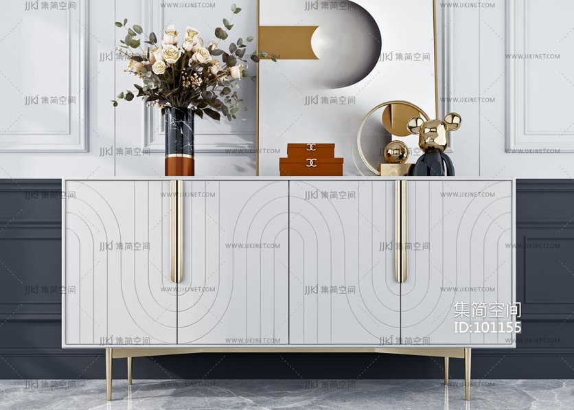 现代轻奢玄关餐边柜,装饰柜 3d模型下载 [模型ID:101155]