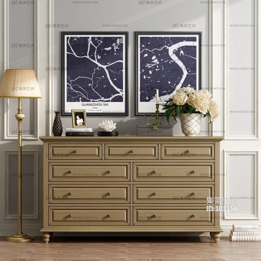 美式玄关柜摆台装饰画3D模型下载3d模型下载