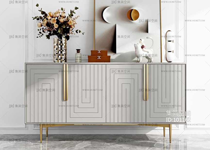 现代轻奢餐边柜, 3d模型下载 [模型ID:101166]