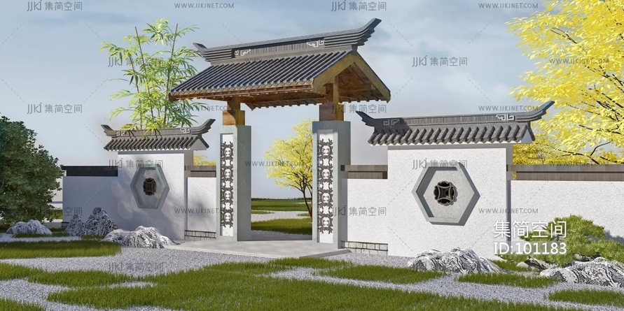 新中式大门院子大门 3d模型下载 [模型ID:101183]