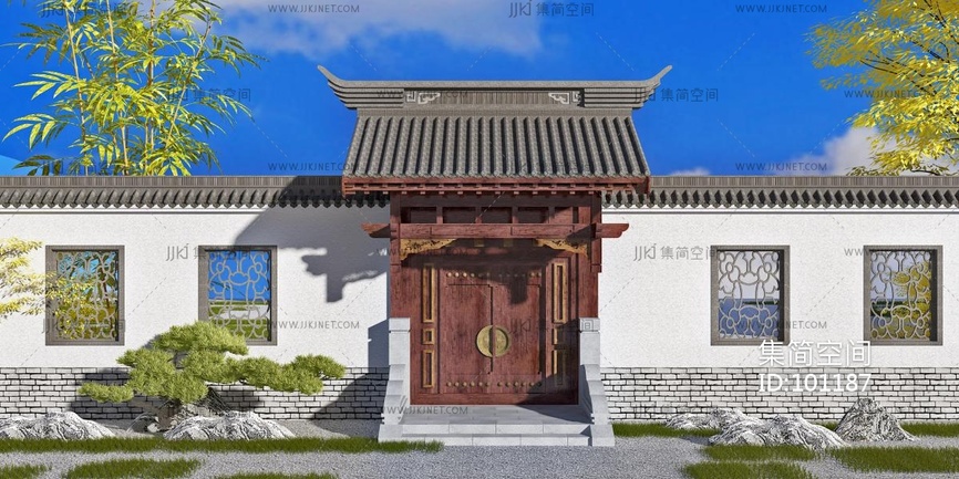中式古典门楼子大门,门头 3d模型下载 [模型ID:101187]